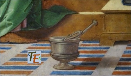 Hisopo más que almirez, pintado por Juan de Borgoña y su equipo en el siglo XVI, para adornar una de las escenas que conforman la Sala Cisneriana de la catedral de Toledo.