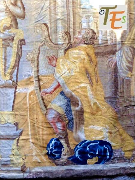 En uno de los antiguos tapices del siglo XV, confeccionados en Flandes que guarda la catedral toledana, se puede ver al rey David de los judíos, a punto de ser coronado.