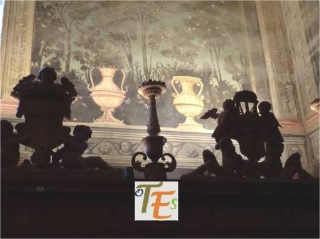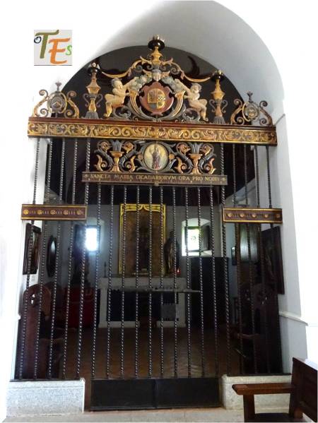 Delicada vidriera emplomada, donde vemos el escudo cardenalicio del personaje de la fotografía anterior, Sandoval y Rojas. Este se halla en un pequeño ventanillo, que pertenece a una de las capillas de la ermita del cigarral del Ángel Custodio, que el mismo fundó en el siglo XVII, cediéndole a la orden mendicante de capuchinos descalzos de San Francisco.