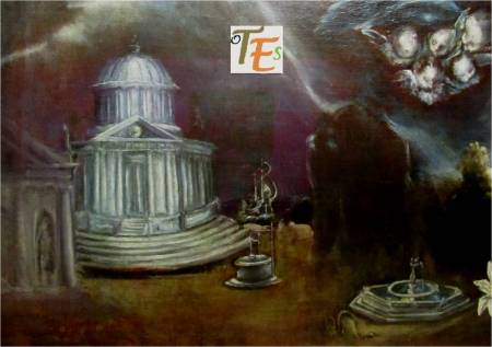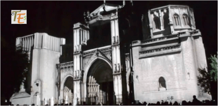 Un rayo de sol, reflejándose sobre las losas grises y negras del templo catedralicio, pareciendo por su movimiento un reloj de sol.
