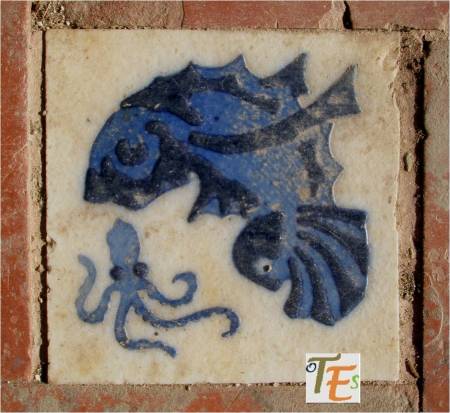 Detalle del mosaico romano, descubierto en la Vega Baja de Toletum, cerca de la presa de Azúmel. Se refiere no solo a los distintos tipos de pesca en el río Tajo, también a los diferentes tipos de pesca y sus pescados importados, desde los confines del imperio.