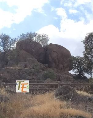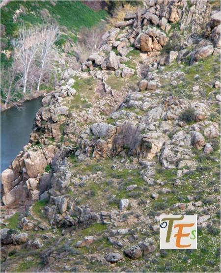 Los grandes canchos de granito, que se encuentran sobre la caída del valle hacia el Tajo. Estos forman parte del denominado conjunto de la «Piedra del Rey Moro». Conjunto megalítico de hace miles de años.