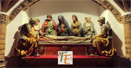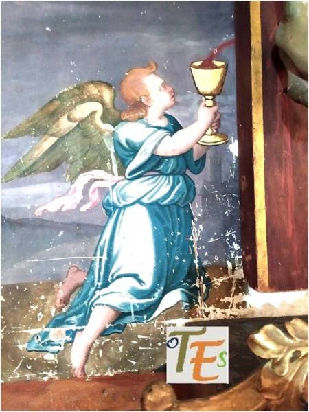 Ángel recogiendo la sangre de Cristo crucificado, en un convento toledano. Este renueva el simbólico mito del Santo Grial.