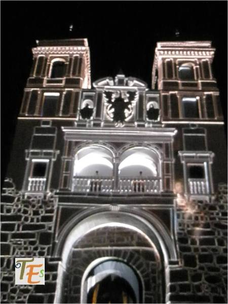 Diferentes tonalidades de colores, sobre la fachada principal del templo gótico por excelencia, de Toledo. Estas embellecen sus torres y sus portadas, haciéndonos ver algo totalmente nuevo en cierta época del año.