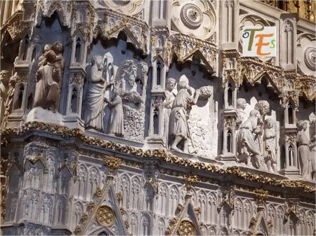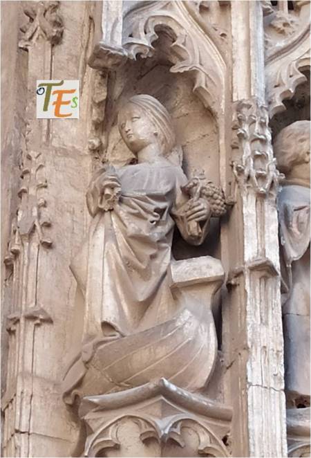 En esta instantánea podemos observar dos grandes hitos o joyas, según se mire. Delante el parteluz de la Puerta de Reyes de la catedral de Toledo, el cual contiene grabados en sus círculos, las ciencias usadas en su construcción y detrás la famosa custodia de Arfe, joya de la cristiandad.