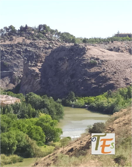 Paisaje donde observamos los baños musulmanes de Abdabaquín o de Curtidores, en la Cornisa del Tajo, bajo la iglesia de San Sebastián.