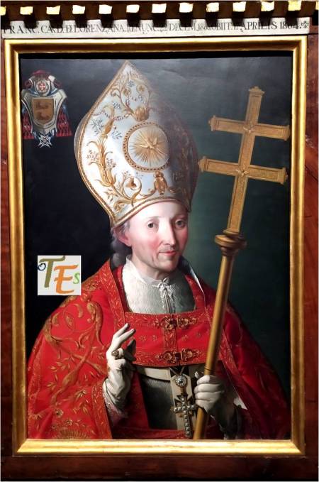 Retrato del cardenal primado de Toledo, Bernardo de Sandoval y Rojas, pintado por Luis Tristán. Este prelado cambio sus apellidos, metiendo el segundo en primer lugar. De ahí que con dicho hecho, muchas de las techumbres de los monumentos que mandó edificar, tuvieron forma oval o elíptica.