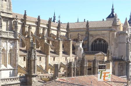 Naves del crucero o transepto sur, nave mayor y naves colaterales, contrafuertes, pináculos y arbotantes de la catedral de Toledo.