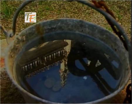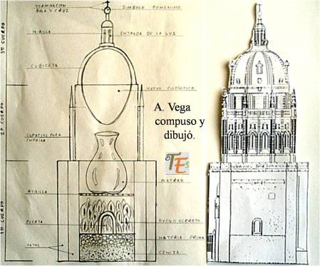 Cuando se hundió esta segunda torre catedralicia, pasando el tiempo se la terminó de una forma muy curiosa, pues su forma determina la de un horno alquímico, que al ser seccionado contiene todos los elementos indispensables para hallar el huevo filosófico.