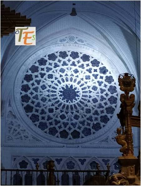 El gran ventanal tras la buhardilla, por donde penetra la luz del día al extraordinario Trasparente catedralicio, construido por Narciso Tomé.