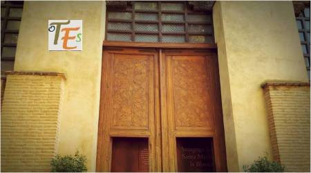 Detalle de la puerta de entrada a la sinagoga de Santa María «La Blanca», con su precioso trabajo en madera con tracería mudéjar.