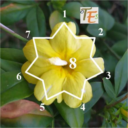 Esta flor amarilla y humilde hallada en el campo, nos enseña geométricamente lo que es un heptágono regular, más el centro. Simboliza a los siete días de la Creación. Sabia naturaleza.