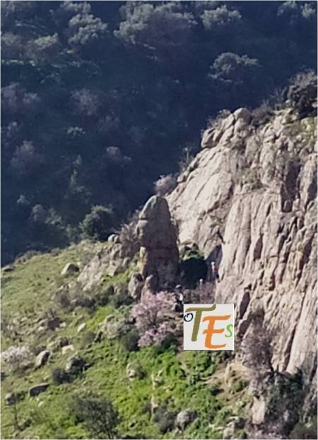 Frente a nosotros el menhir denominado de la Cabeza, en uno de los frontales pétreos tallados por el río Tajo.