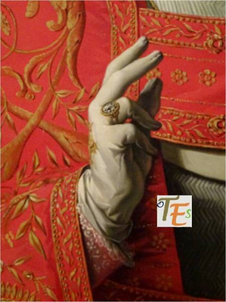 Esta es la mano con guante y anillo cardenalicio, con postura de bendecir, la cual pertenece al cardenal Lorenzana, que nos legó su palacio para universidad y el nuncio nuevo, para enfermos mentales.