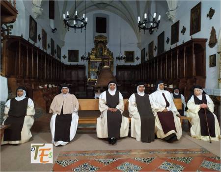 Las monjas jerónimas del Convento de San Pablo, sentadas en su coro interior, tras un acto cultural en su iglesia.