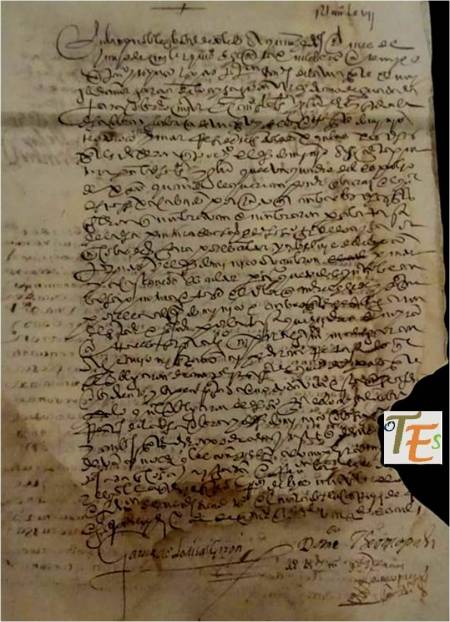 Contrato de compra-venta con la firma de Miguel de Cervantes Saavedra. En el Archivo Provincial de Toledo.
