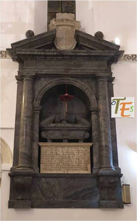 Túmulo de precioso mármol gris del cardenal e inquisidor Fernando Niño de Guevara, enterrado en el convento de San Pablo de Toledo.