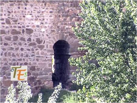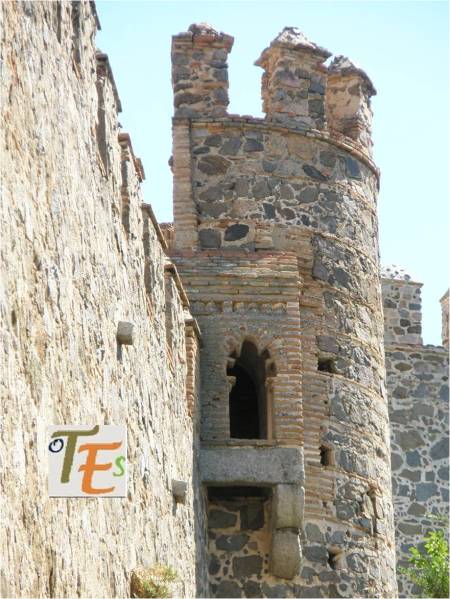 Aquí observamos uno de los torreones restaurados, perteneciente al Castillo de San Servando. En el podemos ver uno de sus matacanes, el cual contiene una ventana enteramente mudéjar, con arco lobulado.