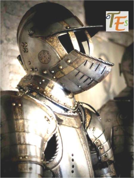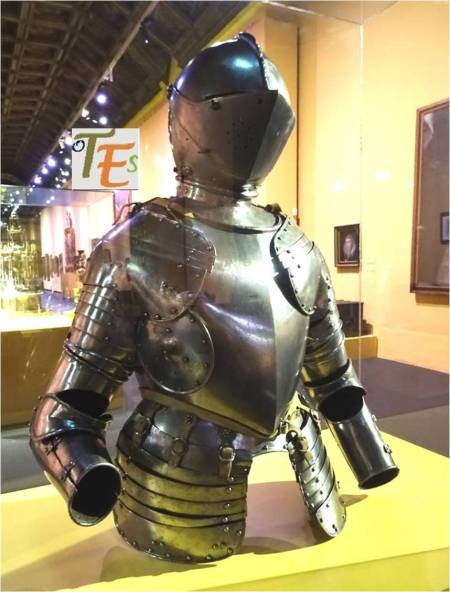 Parte superior de la pulcra armadura damasquinada y el bello casco del sargento, perteneciente a la colección que se encuentra en Toledo, concretamente en la iglesia mozárabe de Santa Justa y Rufina, confeccionada en el siglo XVII, ejecutada por el armero Melchor González Chavarri, que acompaña al Santo Sepulcro en la procesión del Viernes Santo toledano. En el año 2018, dicha procesión no ha salido a la calle el viernes santo, debido a la lluvia.