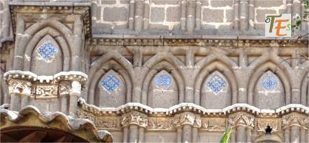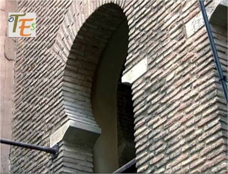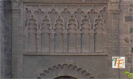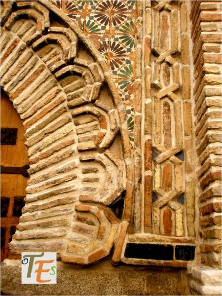 Detalle de uno de los magníficos pórticos que contiene esta ciudad de Toledo. En el vemos el trabajo en estilo mudéjar, por las filigranas hechas en la colocación de sus ladrillos y su embellecimiento a través de baldosines con cerámica de arista.