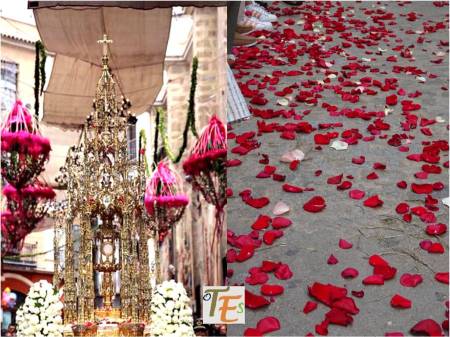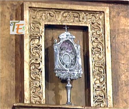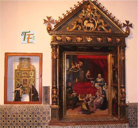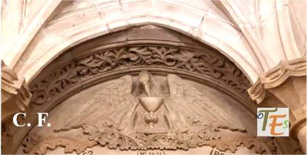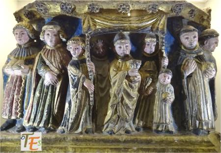 He aquí la peana sustentadora de un sagrario, tallada en piedra caliza y después dorada y policromada en el siglo XV, reflejando que ya entonces se festejaba y se llevaba a cabo la procesión del Corpus Christi. Pertenece al Convento de Santo Domingo «el real».
