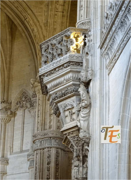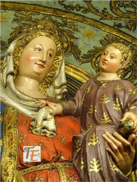 La cara de amor hacia su hijo, de la Virgen de la Estrella en el lado oeste del trascoro de la catedral toledana. Esta fue en sus tiempos la patrona de los pastores, ovejeros y laneros, que con sus fiestas y cánticos molestaban a los cantores del coro, cuando interpretaban sus antífonas acompañados por los órganos.