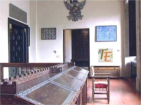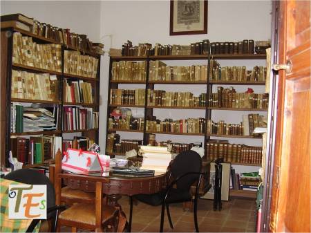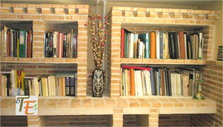 Parte de unas estanterías en estilo mudéjar, las cuales contienen y sustentan una de las bibliotecas particulares de esta ciudad, con libros, escritos e investigaciones, sobre todo lo relacionado con la ciudad de Toledo.