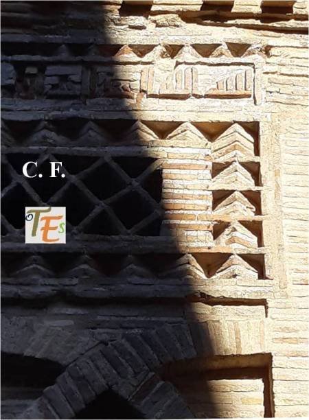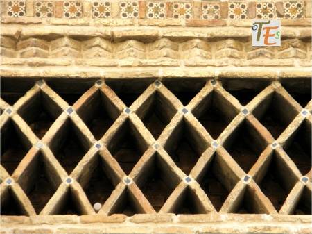 Sutil forma de trabajar el ladrillo toledano, en el estilo mudéjar, surgido en esta ciudad. Dichas formas romboidales, las podemos ver en la escondida puerta del Palacio de Benacazón, antiguo convento de monjes recoletos.