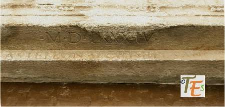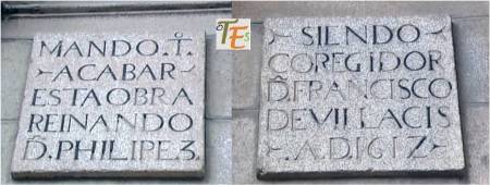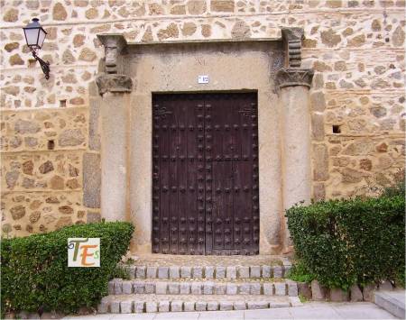 Dintel a la entrada de la casa, que fue de Alonso de Castellón, secretario del Santo Oficio de Toledo. En la parte alta del mismo, observamos la fecha de su construcción, el año 1584.