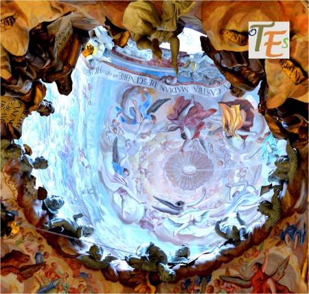 El «círculo de los posibles», donde vemos un revuelo de ángeles y profetas tallados y al fresco, construido por el arquitecto de la Catedral de Toledo, Narciso Tomé, gracias a desmontar una de sus bóvedas, para dar luz a su famoso Trasparente, joya del arte barroco y monumento a la eucaristía.