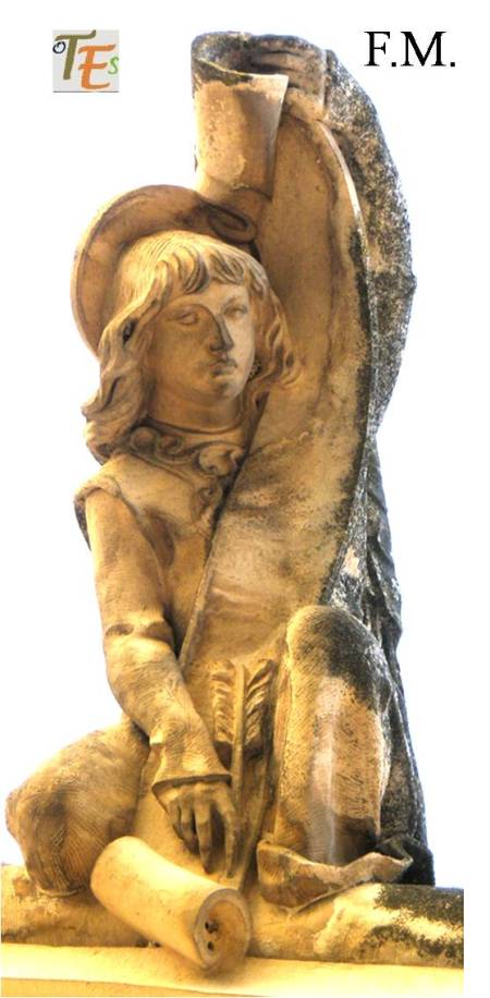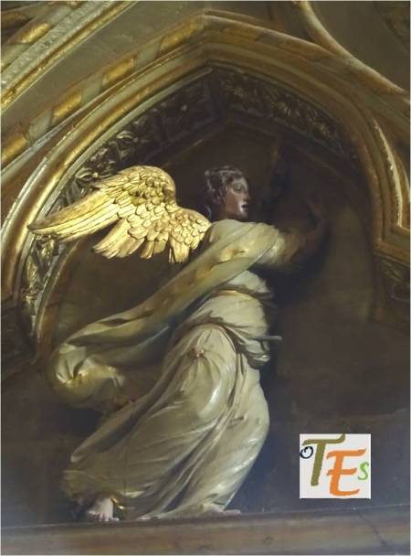 Un ángel volatinero, que con sus alas abiertas quiere levantar el vuelo hacia las alturas. El mismo se encuentra representando a la gloria, en uno de los lados del rico altar mayor de la catedral toledana.