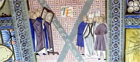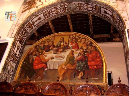 Pinturas al fresco sobre la bóveda que cierra la Sala Capitular de invierno, perteneciente a la Santa Iglesia Catedral Primada. En ellas poder ver como los clérigos medievales, enseñan el Trívium y el Cuadrivium, tanto a mujeres como a hombres.