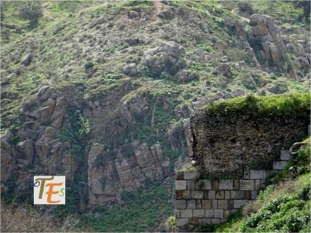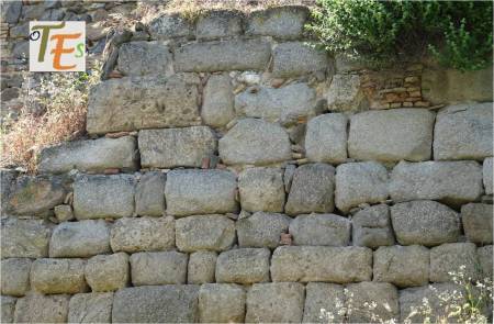 En esta instantánea sobre parte de la muralla toledana, observamos los diferentes tipos de lienzos, los cuales se han ido superponiendo en el espacio tiempo. Por sus diferentes restauraciones vemos hasta cuatro tipos de aparejos, desde piedras romanas usadas por visigodos y musulmanes, hasta parte de un muro mudéjar.