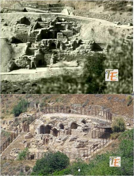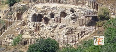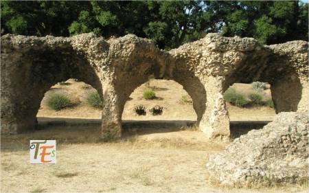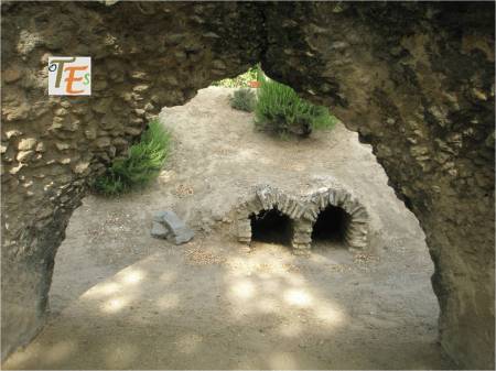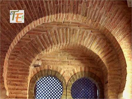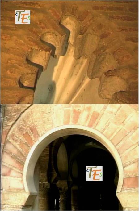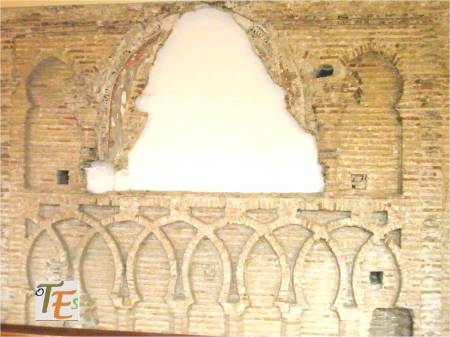 Arcos islámicos de herradura, que pertenecen a la parte central de la mezquita de Tornerías. Al fondo, los restos del arco del mirab, hacia el suroeste, que es hacia donde rezaban los musulmanes, mirando para la ciudad de la Meca.