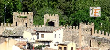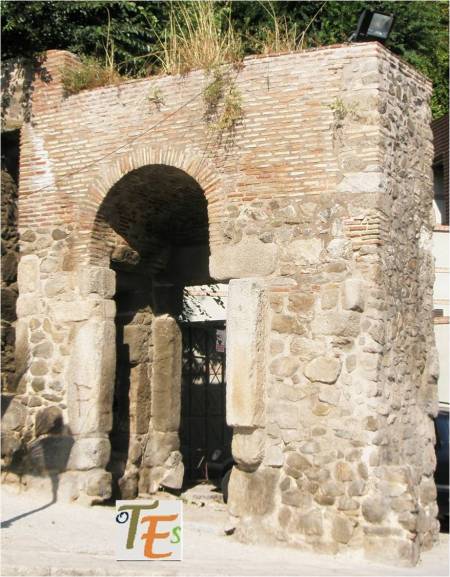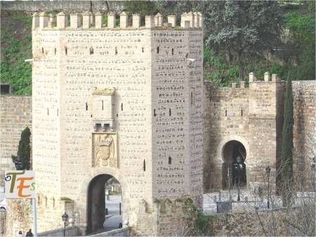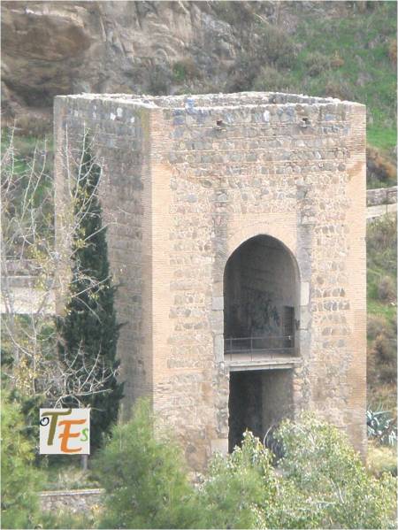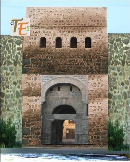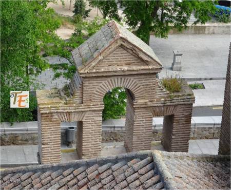 Parte alta con almenas y por ello parte defensiva de la Puerta de Alfonso VI, del siglo X. Fue llamada Puerta Vieja de Bisagra. Por ella salían los muertos musulmanes, hacia el cementerio que se encontraba frente a ella.