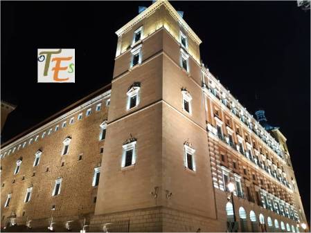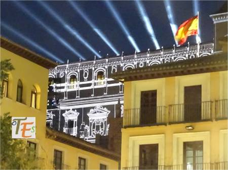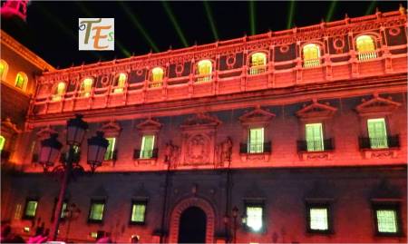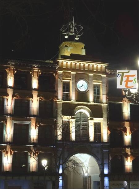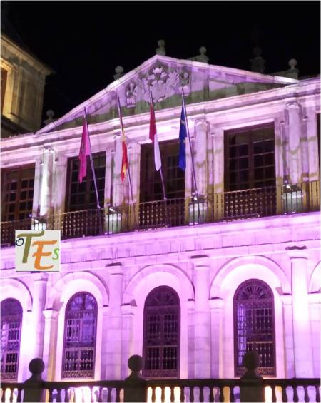 Vemos el frontis del Ayuntamiento de Toledo, coloreado en morado. Representa al día internacional de la mujer y lo más destacado es su lucha contra la violencia de género. Pero se ve que no sirve de nada, pues cada vez se asesinan a muchas más mujeres, mientras que la justicia no hace verdaderas leyes para remediarlo. Mientras tanto el maltrato a los hombres, que también es muy grande según las estadísticas, se encuentra más que callado.