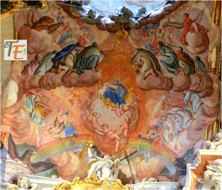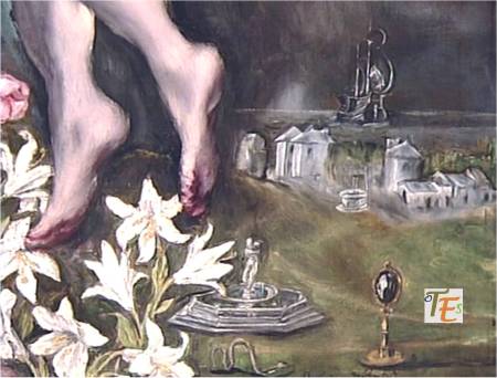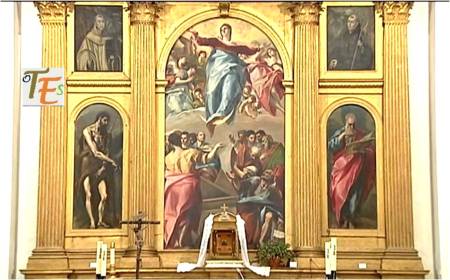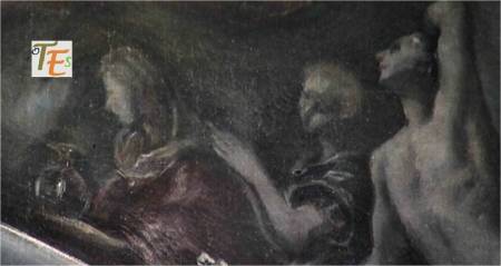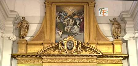 Detalle del cuadro de la Trinidad, pintado para el convento de Santo Domingo «el antiguo», por el genial Doménico Theotocópulis, el Greco. Dicha obra se encuentra en el Museo del Prado, quedando en el convento una buena copia de «Seisdedos».