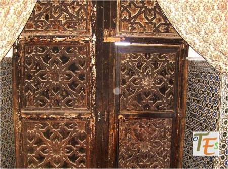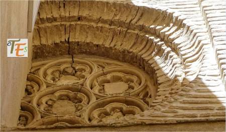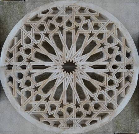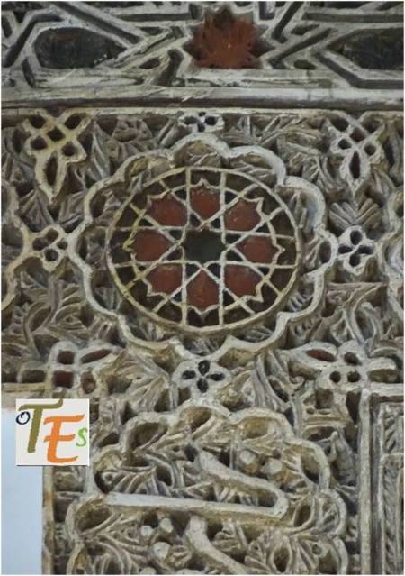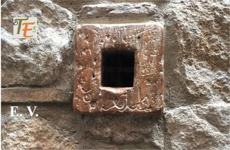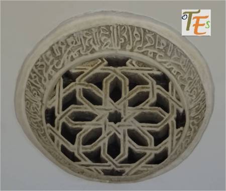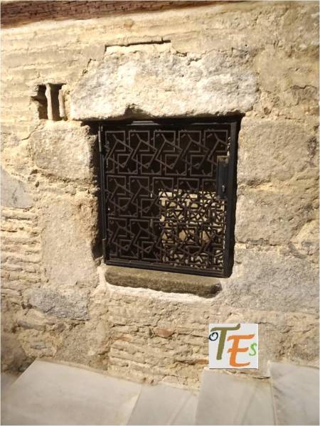 Precioso ventanillo de tipo islámico, el cual se encuentra en uno de los patinillos que forman el laberinto constructivo del convento de Santa Clara. En el círculo exterior cóncavo, se observan las típicas por bellas letras en cúfico, alabando a Alá. En su celosía interior se aprecia un gran trabajo por sus azafates al aire, los cuales se dirigen a un centro octogonal, que representa a la palabra árabe “tawhid” o reconocimiento de la unicidad.