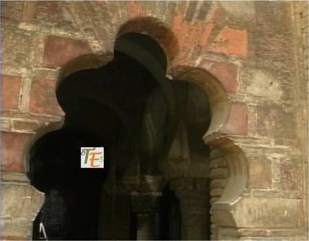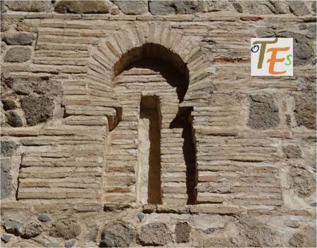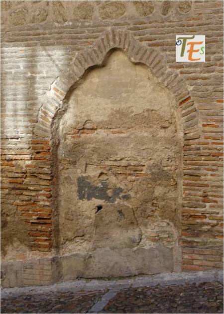 Una de las aberturas de la Mezquita de Ibn-Hadidí, en su lado oeste. En tiempos cristianos, fue la puerta principal de la posterior iglesia del Cristo de la Luz, en cuya parte anterior se arrodilló el caballo de Alfonso VI, al tomar Toledo a los musulmanes, encontrando debajo un crucifijo, iluminado por una vela. La piedra blanca que vemos, recuerda aún dicho lugar.