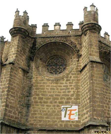 Fachada exterior de una de las más esbeltas capillas radiales catedralicias, donde observamos su semicircular decoración gótica, sobre un gran óculo cóncavo hacia su interior, que finaliza en una bella celosía del mismo estilo, cuyas vidrieras dan luz a su interior.