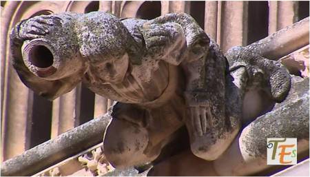 Presentamos aquí una de las veinte gárgolas interiores, las cuales canalizan el agua de lluvia hacia el interior del claustro del Convento de San Juan de los Reyes. Se refiere religiosamente al ángel que representa el evangelio escrito por Mateo, simbolizando junto a sus otras tres compañeras de los otros lados al Tetramorfos, que viene de cuatro por «tetra» y forma por «morphé».