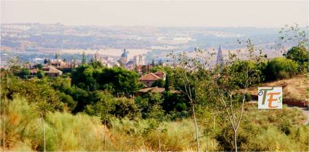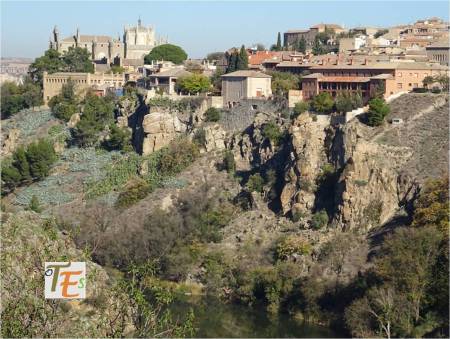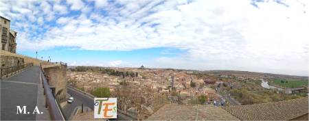 Desde el noroeste, observamos a la ciudad de Toledo. Debajo las murallas alfonsinas que sustentan los echadizos que han tapado alguno de sus antiguos barrios. Más arriba grandes edificios neoclásicos y modernistas construidos sobre antiguos conventos y por encima el caserío con sus cúpulas y torres, con su inigualable estampa.