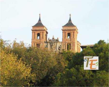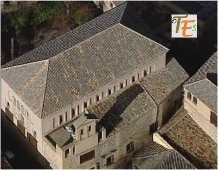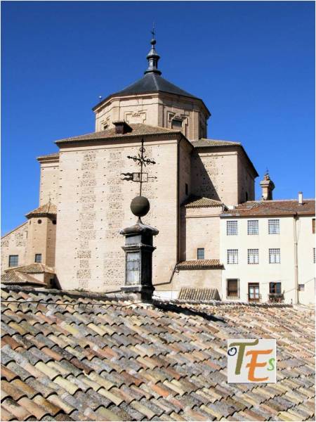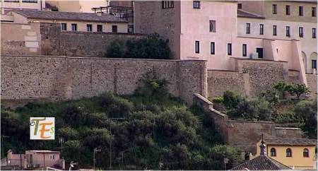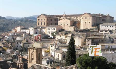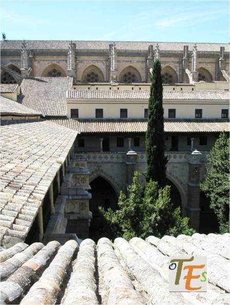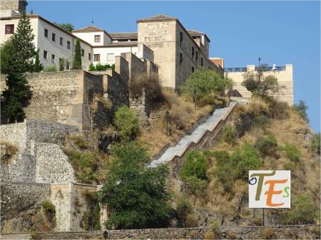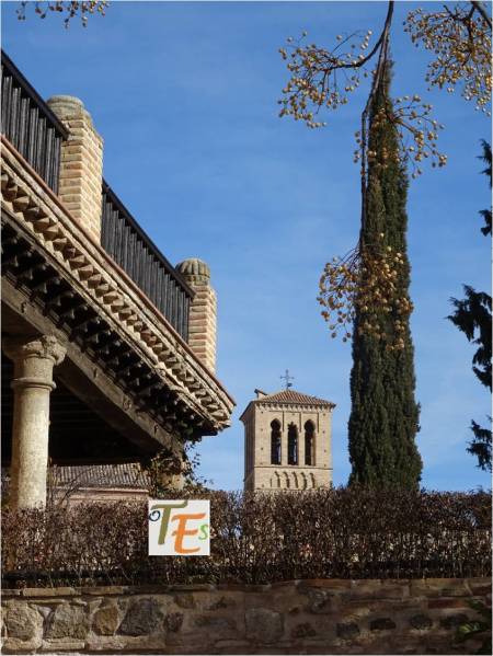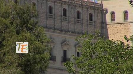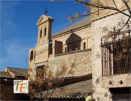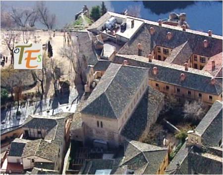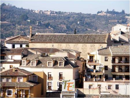 Otra vista desde el interior de esta ciudad patrimonial. En primer término la zona alta del palacio del canónigo Dº Andrés Munárriz, construido en 1536 con trazas de Alonso de Covarrubias, hoy cigarral particular. Por encima los restos reconstruidos del Convento de San Juan de la Penitencia, mandado construir por el Cardenal Cisneros ricamente en 1514, según el estilo mudéjar y destruido en la guerra de 1936. Ahora este edificio alberga el Conservatorio de Música y el prestigioso Centro de Estudios Internacionales de la Fundación Ortega y Gasset.