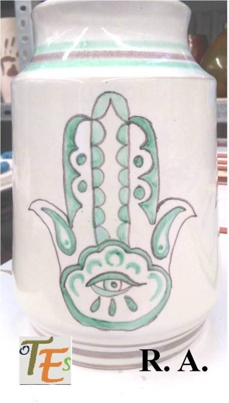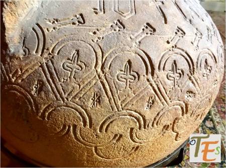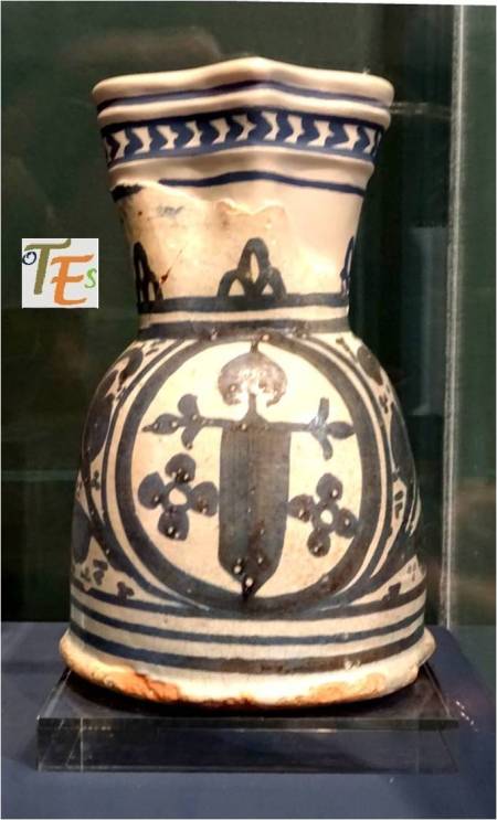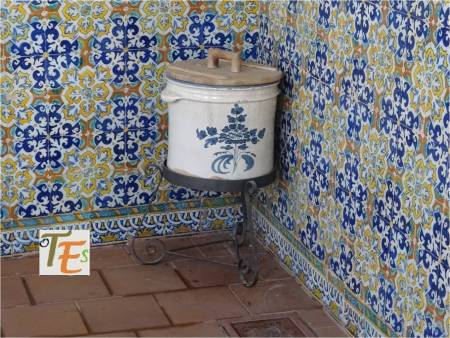 Hermosa y singular tinaja en barro de estilo mudéjar, cuyos adornos determinan su parte de tolerancia allá por los siglos XIV y XV. En ella encontramos manos de Fátima, ramos de olivo, palomas y cuarterones con otros distintos simbolismos.