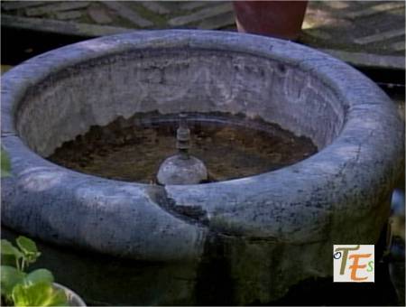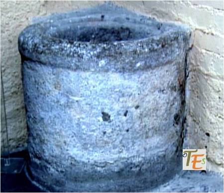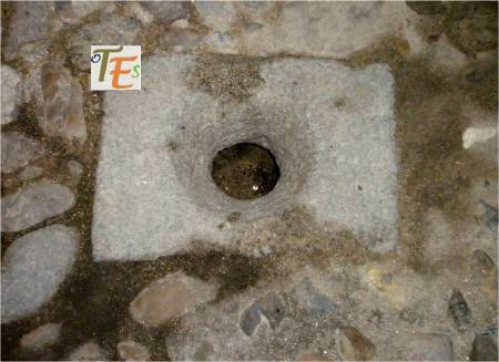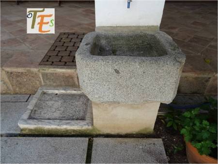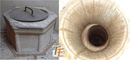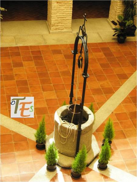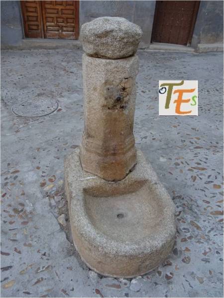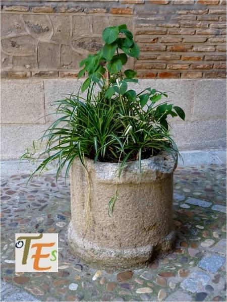 Antiguo brocal de un aljibe en uso, tallado en granito gris en estilo isabelino Se encuentra este en una de las casas del Callejón de la Soledad, la cual formó parte en tiempos de la Casa de los Templarios en Toledo.