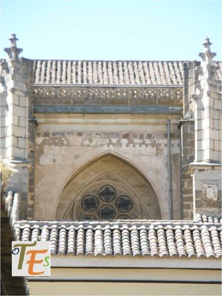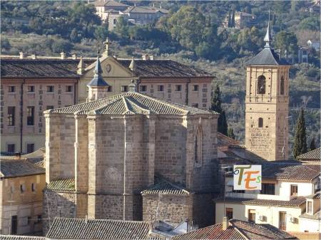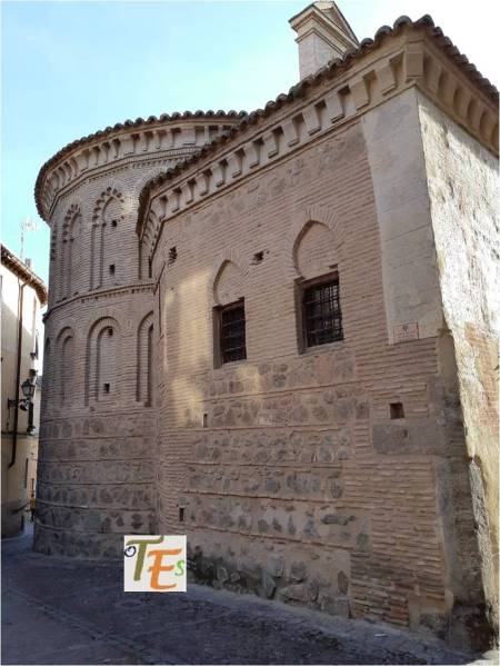 Exterior del ábside en estilo mudéjar, de la iglesia de los santos Justo y Pastor, así como de la antigua capilla denominada del Corpus Christi. Esta última se reconstruyó en el siglo XIV, e interiormente es una de las joyas secretas que guarda esta ciudad patrimonial de Toledo.