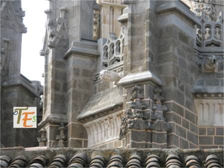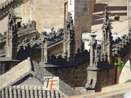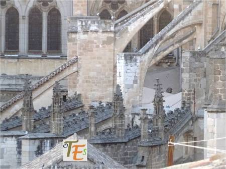 Arbotantes y pináculos, con sus cresterías, que conforman la girola exterior del edificio catedralicio, cuyas estructuras contienen el juego de contrapesos, dando estabilidad y equilibrio a de las bóvedas bajas de su cabecera.
