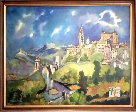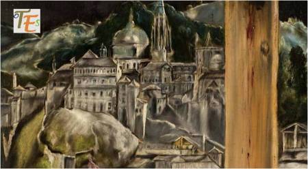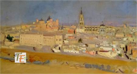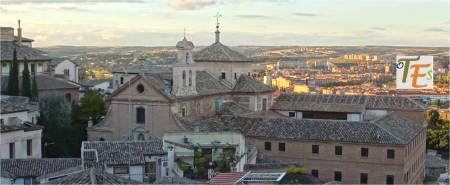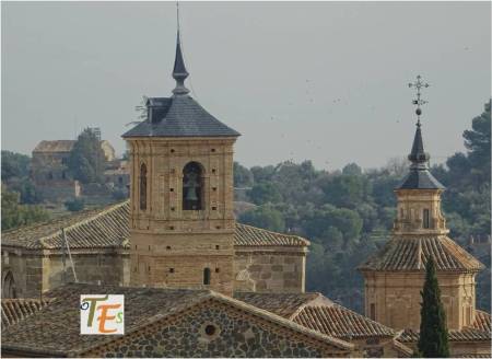Paisaje toledano, donde observamos la cúpula y las torres de San Ildefonso, la torre de San Vicente y la espadaña y el convento de Carmelitas Descalzos. Toda una historia religiosa, en esta ciudad universal.