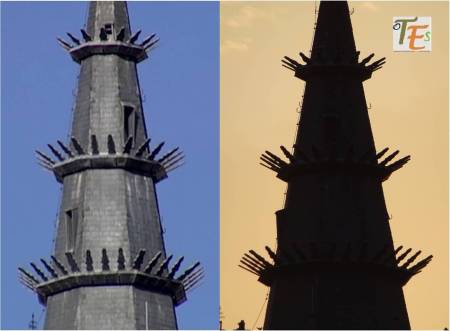 Entre modernos pináculos alcazareños, tallados en granito, se encuentra fabricado en ladrillo y en estilo barroco, el campanario de la esbelta torre de la parroquia de San Nicolás de Bari, en Toledo.