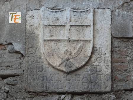 Bajando la pina y estrecha Cuesta del Corchete, nos encontramos un edificio muy singular toledano como es el Nuncio Nuevo, mandado edificar por el cardenal Lorenzana, en cuya fotografía vemos su escudo y a su lado la cúpula de su capilla oval en el centro del conjunto.